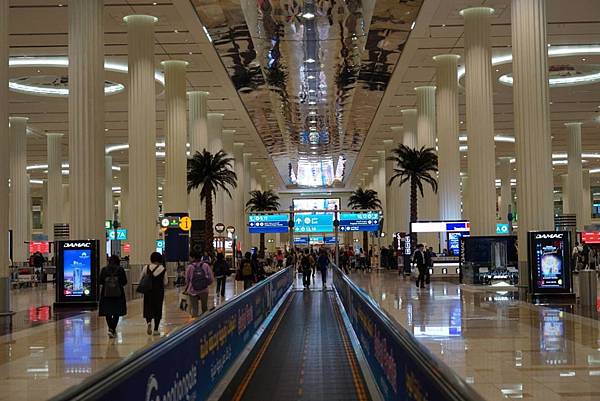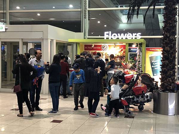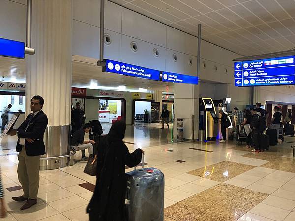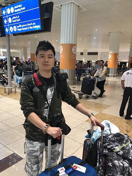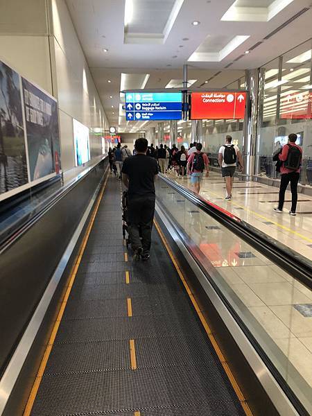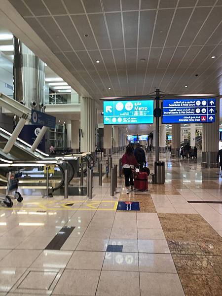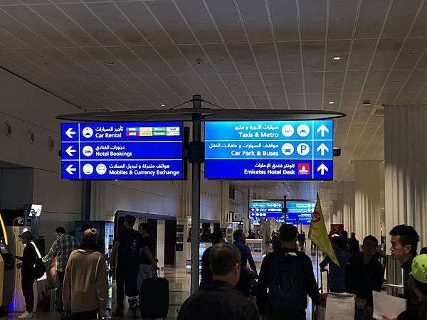 因為有快速通關,我們很快的不用排隊就能一路暢通的到了外面。杜拜機場真的很大,而且這時候才凌晨六點左右,請問這麼多人是怎麼回事?!難怪杜拜機場是重要轉運樞紐,不管幾點人潮都是這麼多!真是開眼界了。