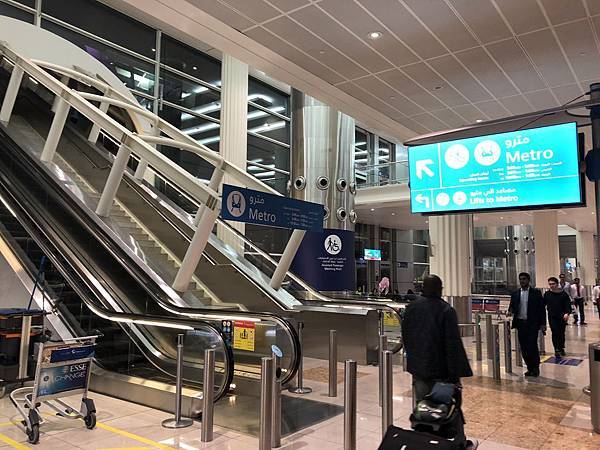 因為我們這次是選擇租車去阿布達比,但之後又要趕回杜拜去哈里發塔跨年,為了怕到時候因為跨年捷運站人擠人無法買車票,因次我們選擇在機場的捷運站先買捷運卡 『Nol Card』。杜拜國際機場的指示牌做得非常清楚,我們看著指示毫不費力就找到我們想要去的地方了!