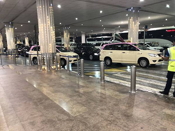 會經過計程車區,粉紅色車頂的計程車是女性司機喔!如果是女孩們可以選擇搭乘女性司機的計程車也會比較安心。