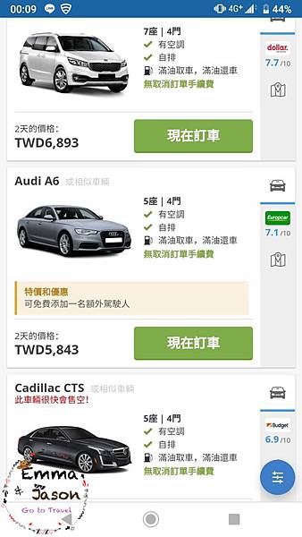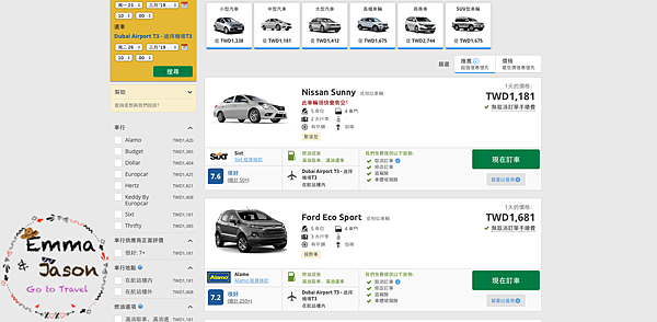 之後會跳出很多車型,以及不同的廠商提供的汽車,大家自己選擇想要的車型及租賃廠商。