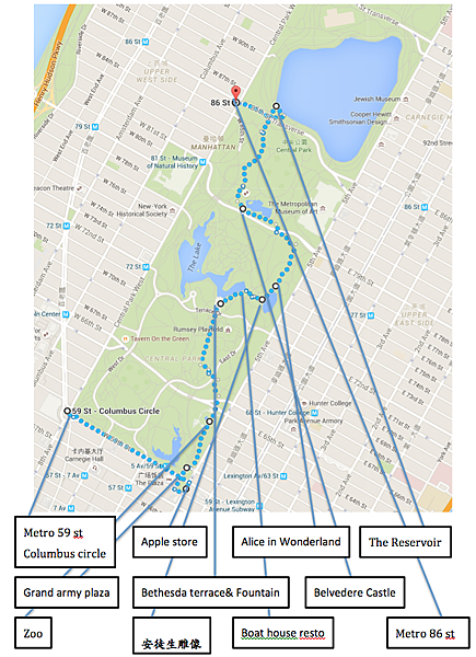 我們首先先搭地鐵到Columbus Circle站,然後攤開Jason哥精心設計的中央公園探險地圖!