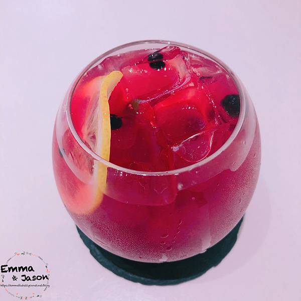 這罐子也太可愛了吧!杯子裡面有一顆圓圓的大冰塊,冰塊裡有檸檬還有一團薄荷草,把薑汁汽水倒進去等它融化後,就會有檸檬薄荷的味道,很清爽!也好特別啊!