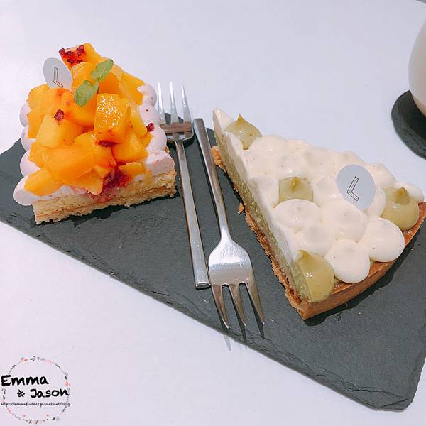 『芒果覆盆莓起士蛋糕』和『酪梨塔』,其中我和朋友最愛的是酪梨塔,酪梨醬搭配香草奶霜和酥酥的杏仁蛋白餅真不錯,平常酪梨比較少出現在甜點裡,這天吃進去濃郁的酪梨醬讓我們都很驚豔,是比較特別的甜點!芒果和覆盆莓的搭擋就是酸酸甜甜的戀愛好滋味,也很不錯!